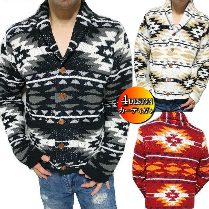 カーディガン メンズ オルテガ 柄 ニットカーディガン ショールカラー ネイティブ柄 ジャガード コンチョボタン 長袖 トップス Buyee 日本代购平台 产品购物网站大全 Buyee一站式代购 Bot Online